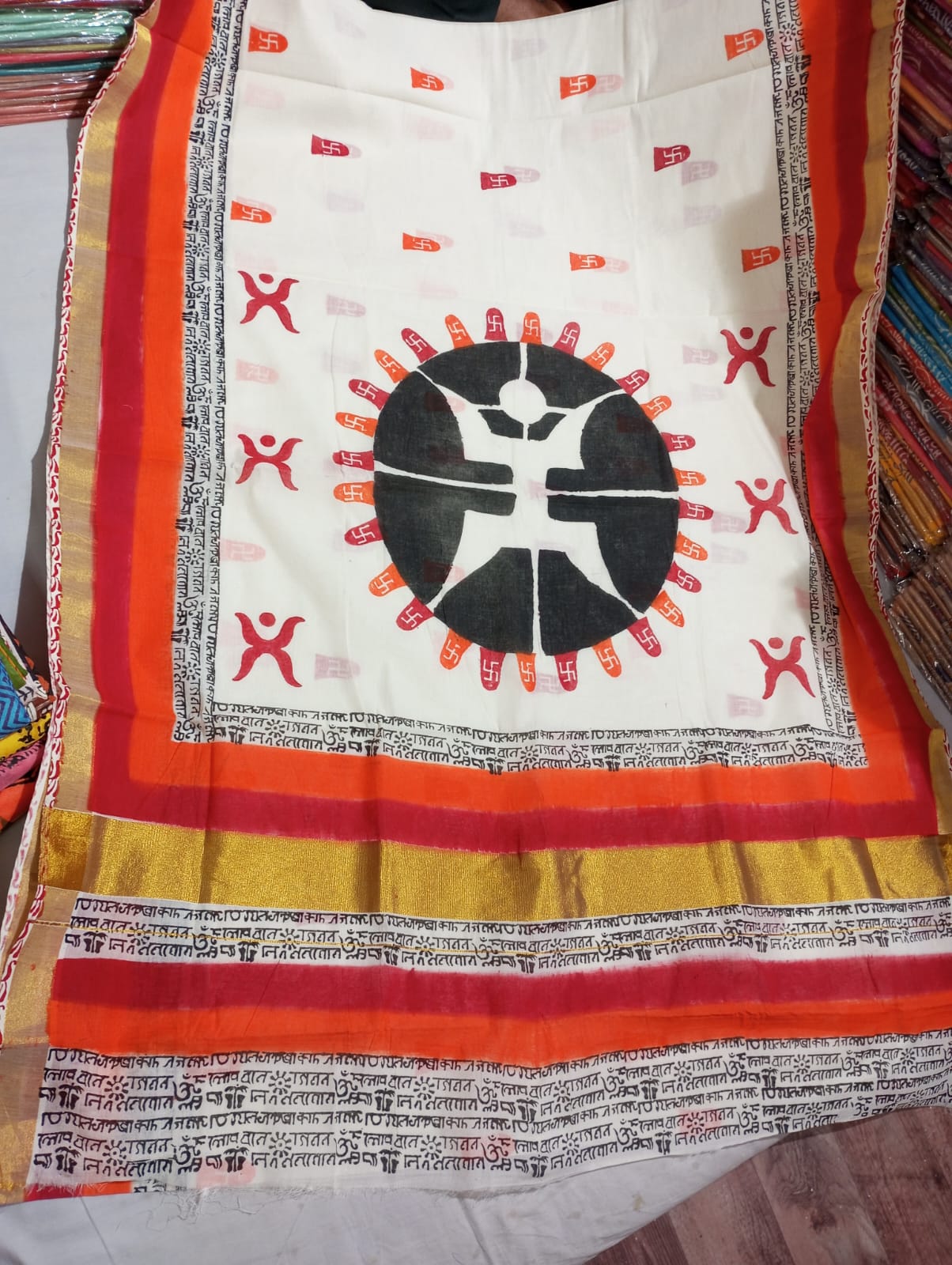 Elegant printed Kerala Cotton. Lightweight perfect for regular office wear.