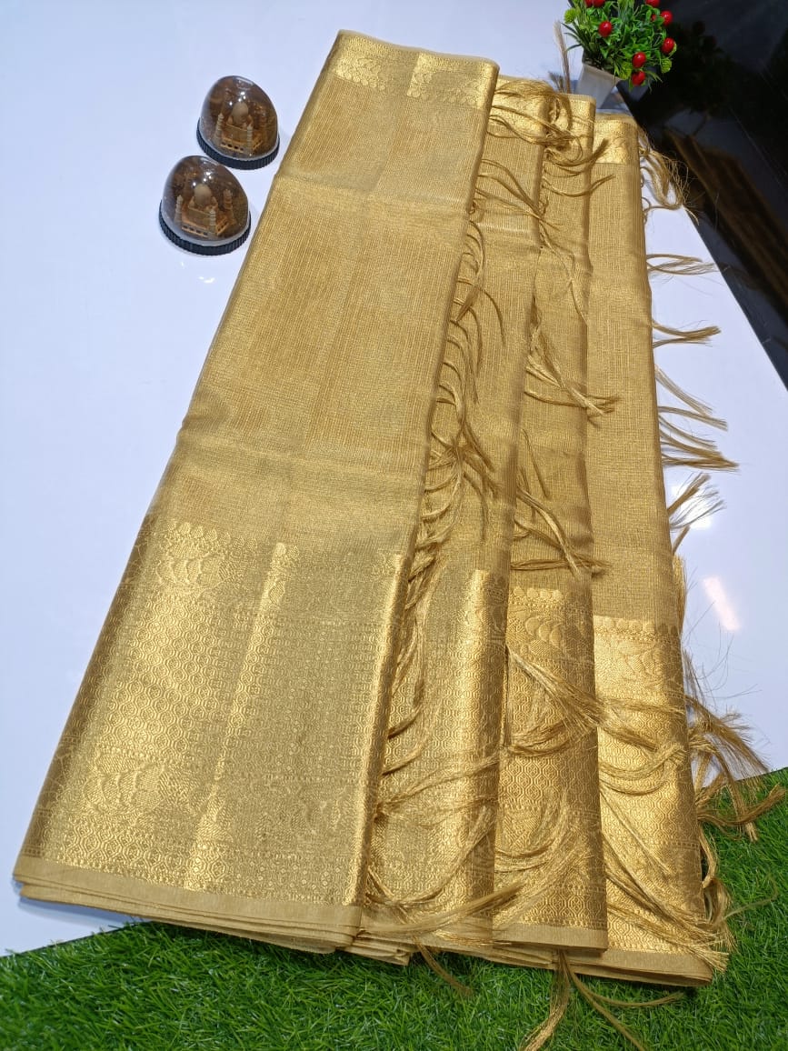 Golden colour elegant tissue kota organza. Best for Indian Ethnic wear.